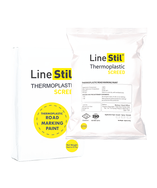 - LineStil®/Thermoplastic Screed Road Marking Paint is a type of paint that offers high long-term reflection, adhesion, and abrasion resistance performance on asphalt surfaces. One of its significant advantages is that the application area can be opened to traffic within 2 to 4 minutes, depending on the surface temperature, due to its fast drying time.